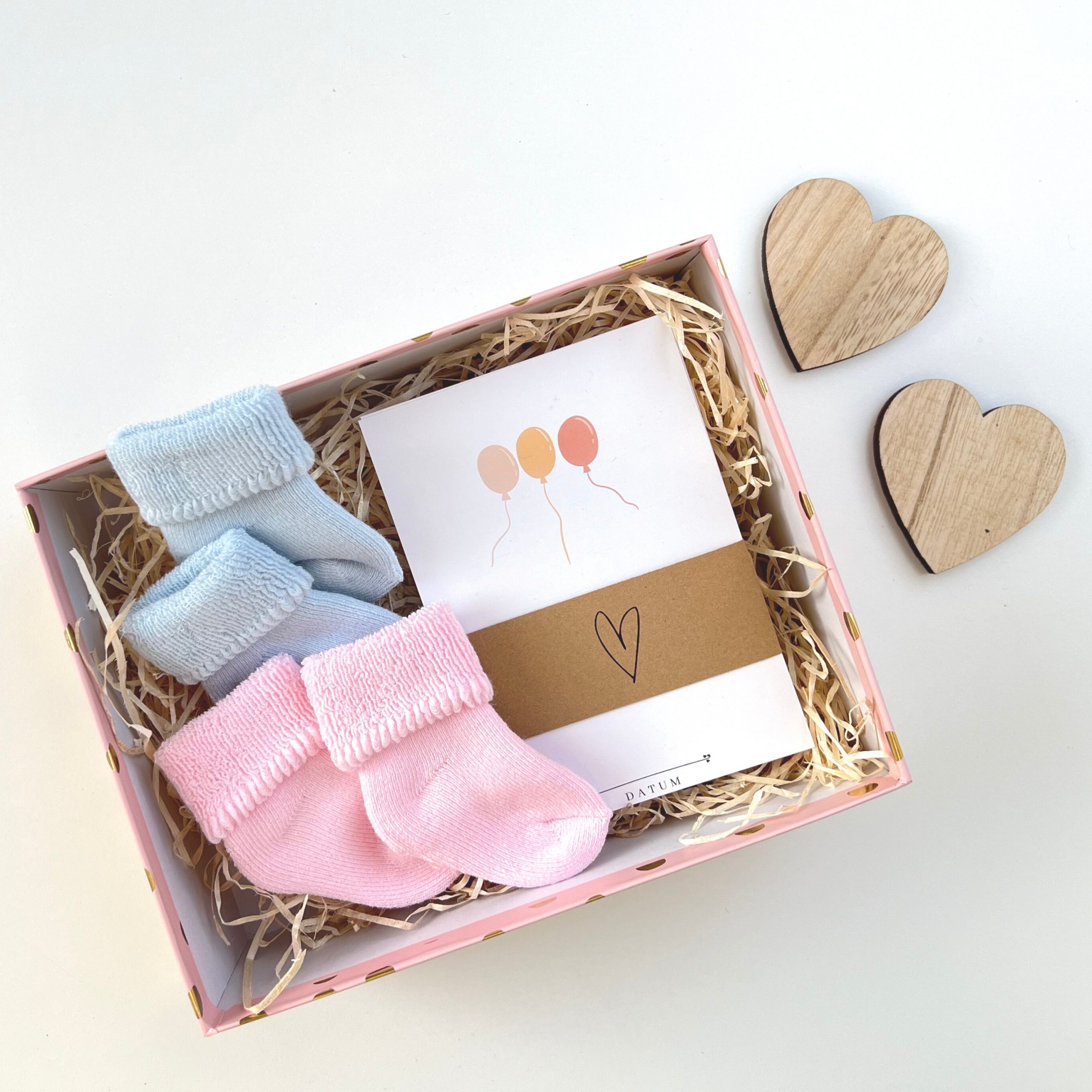 Als Geschenkset mit Babysocken in der Farbe „rosa“ oder „blau“ von sterntaler.